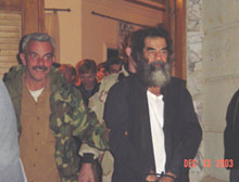 上述照片看似是由美國軍方內(nèi)部或是與美軍關系密切的人在美軍抓到薩達姆時拍攝的。其中另一張照片顯示,當薩達姆被帶往他在巴格達的一座皇宮、現(xiàn)為美軍總部時數(shù)十名軍方人員圍在薩達姆身邊。
