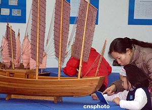 “紀念鄭和下西洋600周年仿真航模展覽”一月十七日在蘇州吳作人藝術(shù)館展出。展覽共展出了近四十件模型,包括仿鄭和下西洋船隊模型,各種現(xiàn)代海船、艦艇模型以及圖片資料吸引了前來參觀的中小學生。作者:蔣振江