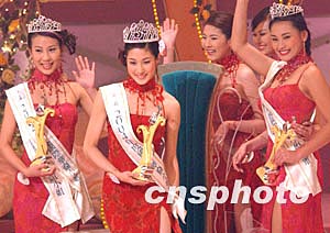 中新網(wǎng)1月18日電 “2004年度國際華裔小姐競選”昨晚在香港將軍澳電視廣播城舉行,來自溫哥華的鐘嘉欣以黑馬姿態(tài)勝出,勇奪冠軍。香港的曹敏莉也不負(fù)眾望,奪得亞軍及友誼小姐;季軍及“笑靨花容小姐”獎項則由來自馬尼拉的洪巧玲奪得。