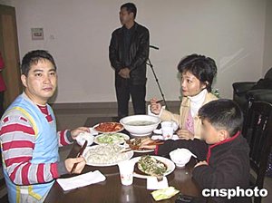因涉嫌在海南從事間諜活動被拘押的臺灣人宋孝濂,一月二十日在有關(guān)部門的安排下與前來探視的妻子和兒子吃團圓年飯。作者:王辛莉