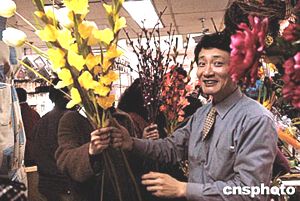 北京禮品工藝花卉市場在春節(jié)前夕生意異;鸨N售工藝花卉的攤主忙得樂不可支。中新社記者:鄒憲