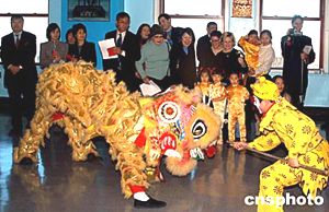亞美商業(yè)發(fā)展中心和紐約市旅游局等合作二十日舉行紐約帝國(guó)大廈亮燈儀式,慶祝中國(guó)農(nóng)歷新春,華埠舞獅隊(duì)和華人京劇團(tuán)共同表演金猴戲獅,表現(xiàn)華人歡度新春的喜慶和吉祥。作者:趙海燕
