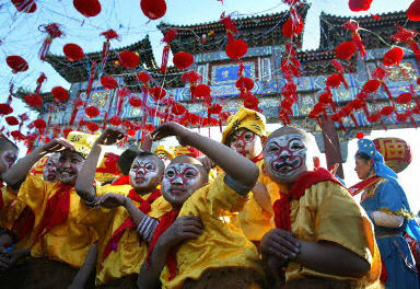 中國(guó)京劇中的“金猴”為北京地壇廟會(huì)增添喜慶氣氛。逛廟會(huì)是北京傳統(tǒng)的游園活動(dòng)。