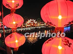 春節(jié)期間的南京夫子廟被大紅宮燈和五彩繽紛的花燈裝扮得分外美麗。作者:丁梅