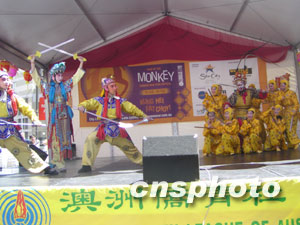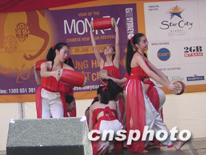 澳洲僑青社24日在悉尼中國(guó)城德信街舉行盛大的新春聯(lián)歡會(huì),數(shù)以萬(wàn)計(jì)的華人華僑和各界人士出席了開幕儀式,并觀看了精彩的文藝節(jié)目。此次新春聯(lián)歡會(huì)一連兩日,由北京藝術(shù)團(tuán)、澳洲僑青社、悉尼西區(qū)華人協(xié)會(huì)以及黃河合唱團(tuán)的藝人獻(xiàn)演豐富多彩的歌舞和音樂(lè)節(jié)目,令悉尼各界人士耳目一新。中新社記者劉雨生攝