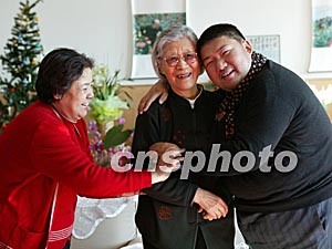 毛澤東主席的兒媳婦邵華(左),孫子毛新宇(右)春節(jié)期間到張愛萍將軍家拜年,與張將軍的夫人李又蘭在一起辭舊迎新。中新社記者:王瑤