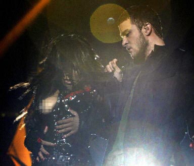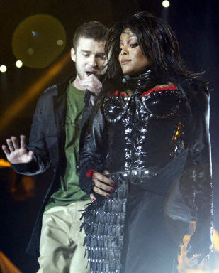 美國歌手珍妮-杰克遜與賈斯汀在美式足球超級杯大賽中場演出時公然露胸引發(fā)軒然大波,珍妮-杰克遜當?shù)貢r間2日晚上對媒體發(fā)表道歉聲明。她表示,撕扯上衣的點子是總彩排結(jié)束后才臨時決定的,想不到正式上場時擦槍走火而讓原本預期的演出效果走樣。圖為珍妮·杰克遜與布蘭妮的前男友賈斯汀一起演唱。