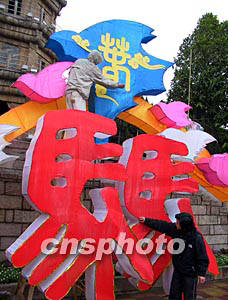 由馬尾經(jīng)濟(jì)文化交流合作中心與馬祖經(jīng)貿(mào)文化交流聯(lián)誼會(huì)聯(lián)合舉行的“兩馬鬧元宵”,將于五日在馬尾羅星塔公園舉行。連日來(lái),“兩馬”制燈藝人在羅星塔公園緊張制作花燈,馬尾方面還在羅星塔下專辟了一千六百多平方米場(chǎng)地作為馬祖花燈展地,將展出馬祖各種大小花燈三百多盞。