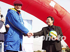 第十屆全國運(yùn)動(dòng)會將于二零零五年在江蘇舉行,二月五日江蘇省洪澤籍的中國女排副攻手趙蕊蕊委托父親將中國女排全體隊(duì)友簽名的排球送給家鄉(xiāng)父老鄉(xiāng)親,鼓勵(lì)大家健身奔小康。作者:丁東升