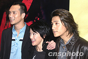 2月5日下午,電影《戀愛中的寶貝》在北京舉行首映新聞發(fā)布會(huì)。這部影片融合了中國電影第五代最前衛(wèi)的藝術(shù)思考與風(fēng)格創(chuàng)新。正式放映之前就獲得包括威尼斯電影節(jié)、柏林電影節(jié)、墨爾本電影節(jié)、意大利遠(yuǎn)東電影節(jié)、香港電影節(jié)等各大電影節(jié)的邀請(qǐng)。被稱為中國內(nèi)地2004年最值得期待的第一部國產(chǎn)大片。圖為影片的三名主要演員:黃覺、周迅、陳坤(從左到右)。作者:高遠(yuǎn)