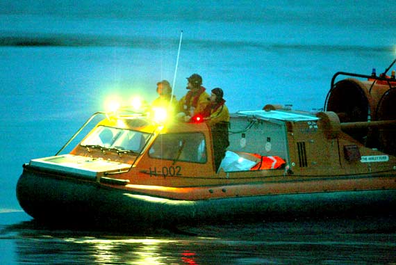 圖:英國(guó)救援人員乘救生艇在海灣搜尋遇難者