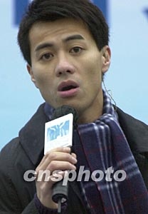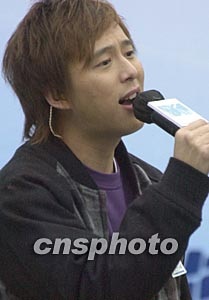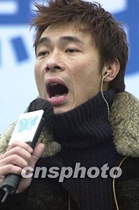 渣打馬拉松大使、香港歌星許志安二月七日在維多利亞公園舉行“渣打馬拉松2004打氣音樂會(huì)”上演唱。中新社記者:錢興強(qiáng)