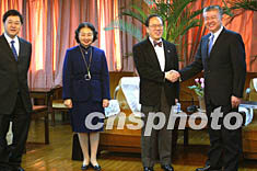 由香港政務(wù)司司長曾蔭權(quán)率領(lǐng)的政制發(fā)展專責(zé)小組,二月九日上午與國務(wù)院港澳事務(wù)辦公室副主任徐澤(右)會面。中新社記者:鄭萍萍