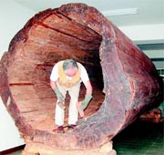據(jù)聯(lián)合晚報報道,張松樹說,這棵超級臺灣紅檜原木,長8.2米,直徑2.43米,重達數(shù)噸,陳姓原主人利用臺灣紅檜超大樹干中空,布置一張床,兩頭掛蚊帳,有空便在天然芬多精的原木中睡覺,吸取樹木精華。