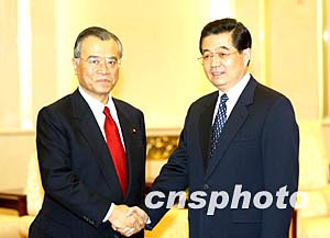 胡錦濤指出,中日雙方要繼續(xù)發(fā)揚兩國政黨交往的特點和優(yōu)勢,為構(gòu)筑新世紀中日睦鄰友好合作關(guān)系做出新的貢獻。