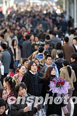 二月十四日,北京王府井商業(yè)街在情人節(jié)這一天迎來了購物潮,眾多情侶的到來使王府井商業(yè)街充滿浪漫氣息。中新社記者:盛佳鵬