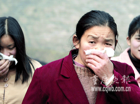 昨日9時(shí)許,重慶天原化工總廠發(fā)生泄漏事故,據(jù)調(diào)查小組分析后認(rèn)為,泄漏的是氯化氫氣體,污染了大水井合作社與雞心石合作社,附近居民先后出現(xiàn)流淚、咳嗽等現(xiàn)象。苗兒石小學(xué)500多名師生當(dāng)時(shí)正在上興趣課,9時(shí)30分左右,一種霧狀刺鼻氣體開(kāi)始在全校彌漫開(kāi)來(lái),并幾乎將全校籠罩,“突然來(lái)的氣體熏得睜不開(kāi)眼了。老師忙喊快走快走!”補(bǔ)課的學(xué)生緊急疏散。該校三年級(jí)一位姓張的小朋友說(shuō),跑出教室才發(fā)現(xiàn),全校的同學(xué)都捂著鼻子往家跑了。