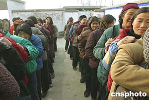在河南省駐馬店市上蔡縣蘆崗鄉(xiāng)文樓村衛(wèi)生所,村民們排隊(duì)等候領(lǐng)取免費(fèi)藥品。文樓村是一個(gè)艾滋病疫情高發(fā)村,三千二百多村民中有數(shù)百人染上愛(ài)滋病。現(xiàn)在村民凡出現(xiàn)頭疼、拉肚子的癥狀,都能在衛(wèi)生所領(lǐng)取免費(fèi)藥物。作者:慎重