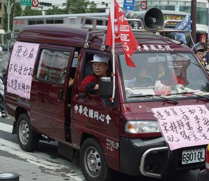 游行自下午1時(shí)許開始,參加民眾分乘160多輛汽車,車上插著旗幟、貼著標(biāo)語,上書“愛中華,反‘臺(tái)獨(dú)’,反戰(zhàn)爭,要和平”、“拒領(lǐng)公投票,否決違法公投”等字樣。車隊(duì)從中華路與成都路交界處出發(fā),浩浩蕩蕩穿行臺(tái)北市區(qū)主要街道,最后匯集到臺(tái)灣當(dāng)局領(lǐng)導(dǎo)人的辦公場所前。游行民眾在這里高喊口號(hào),書寫標(biāo)語,表示抗議。