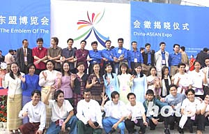 二月二十九日,中國(guó)—東盟博覽會(huì)會(huì)徽“凝聚·綻放·繁榮”的面紗在南寧國(guó)際會(huì)展中心揭開(kāi),中國(guó)—東盟博覽會(huì)開(kāi)始以嶄新、統(tǒng)一、鮮明的形象面向世界。作者:劉萬(wàn)強(qiáng)