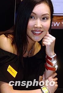 勞倫斯珠寶首飾公司三月三日在香港舉行的國(guó)際珠寶展上,首度推出全新ELINI腕表系列產(chǎn)品。圖為香港名模展示新款腕表系列產(chǎn)品。作者:錢興強(qiáng)