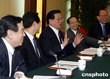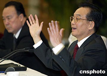 溫家寶今天來到出席全國政協(xié)十屆二次會議經(jīng)濟(jì)界和農(nóng)業(yè)界委員下榻的鐵道大廈。在經(jīng)濟(jì)界和農(nóng)業(yè)界聯(lián)組會上,溫家寶認(rèn)真聽取委員們的發(fā)言,他感謝委員們對政府工作的關(guān)心和支持,表示要認(rèn)真研究大家的意見和建議,努力改進(jìn)政府工作。