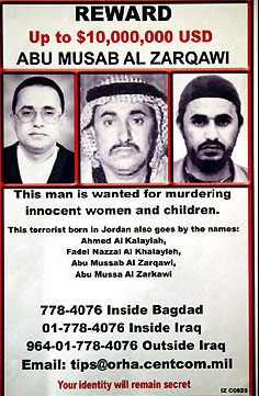 今年2月,駐伊美軍向公眾發(fā)布了一封截取的信件,這封信是由扎卡維親筆寫給“基地”領(lǐng)導(dǎo)人的,其中詳細(xì)記載了6月30日權(quán)力移交前所發(fā)動(dòng)襲擊的具體計(jì)劃。美國官員聲稱,扎卡維涉嫌參與并策劃了今年在伊拉克發(fā)生的多起自殺性爆炸事件。