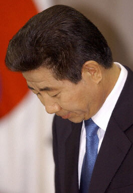 3月12日,韓國(guó)國(guó)會(huì)以193票對(duì)2票通過(guò)彈劾總統(tǒng)動(dòng)議案。如果此次投票有效,盧武鉉將成為韓國(guó)歷史上首位遭彈劾的總統(tǒng)。圖為11日盧武鉉舉行電視新聞發(fā)布會(huì),并向全國(guó)人民鞠躬。
