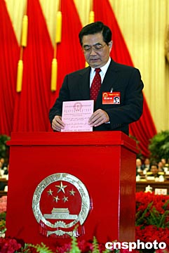 圖:胡錦濤投票表決“憲法修正案草案”