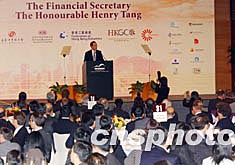 香港特別行政區(qū)財(cái)政司司長唐英年,三月十五日在香港總商會(huì)舉行的午餐會(huì)上,回答商界人士提出的有關(guān)2004/2005年財(cái)政預(yù)算案問題。 作者:錢興強(qiáng)