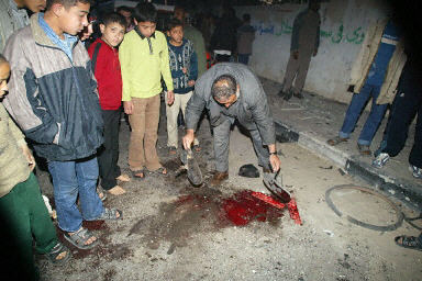 圖為巴勒斯坦警察在亞辛身亡的現(xiàn)場(chǎng)收查線索。