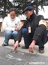 侵華日軍南京大屠殺遇難同胞紀(jì)念館自三月一日免費開放以來,接待人數(shù)超過了去年同期十倍。七十一歲的南京大屠殺幸存者佘子清自愿到紀(jì)念館當(dāng)義工。三月二十四日,佘子清向游人講解自己被拓印在銅版路上的腳印,控訴日軍暴行。作者:丁東升