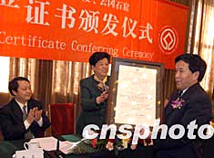 四月六日,來(lái)自云南、山西、北京、南京的代表歡聚北京人民大會(huì)堂,參加由中國(guó)聯(lián)合國(guó)教科文組織全國(guó)委員會(huì)等舉辦的世界遺產(chǎn)證書(shū)頒發(fā)儀式。國(guó)務(wù)委員陳至立向被列入聯(lián)合國(guó)教科文組織《世界遺產(chǎn)名錄》的云南“三江并流”、山西“云岡石窟”、北京“明十三陵”、南京“明孝凌”等的代表頒發(fā)了證書(shū)。中新社記者:任海霞