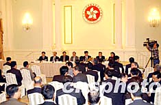 為使香港社會(huì)更多了解全國(guó)人大常委會(huì)就《基本法》附件一第七條和附件二第三條的解釋,香港特區(qū)政府和中央駐港聯(lián)絡(luò)辦公室,邀請(qǐng)全國(guó)人大常委會(huì)喬曉陽(yáng)副秘書長(zhǎng)、全國(guó)人大常委會(huì)法律工作委員會(huì)李飛副主任、國(guó)務(wù)院港澳事務(wù)辦公室徐澤副主任,專程到港出席座談會(huì),聽(tīng)取各界人士對(duì)香港政制發(fā)展的建議。圖為4月7日下午在香港禮賓府舉行的香港政制發(fā)展座談會(huì)。作者:洪少葵