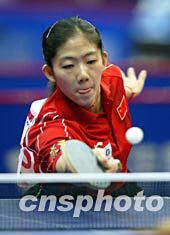 2004年雅典奧運(yùn)會(huì)乒乓球亞洲區(qū)預(yù)選賽四月九日在北京舉行,中國隊(duì)女選手牛劍鋒首戰(zhàn)輕取對(duì)手。中新社記者:毛建軍