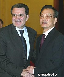 普羅迪說,毫無疑問,歐盟希望無論在經(jīng)貿(mào)領(lǐng)域,還是在世界事務(wù)中,都與中國成為更重要的合作伙伴。歐盟希望進一步發(fā)展同中國的戰(zhàn)略關(guān)系,使雙方的合作更加多樣化。普羅迪重申歐盟將堅持一個中國的原則立場。