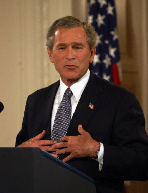 布什在美國(guó)黃金時(shí)間舉行實(shí)況轉(zhuǎn)播的記者招待會(huì),是伊拉克戰(zhàn)爭(zhēng)開(kāi)始以來(lái)的第一次。