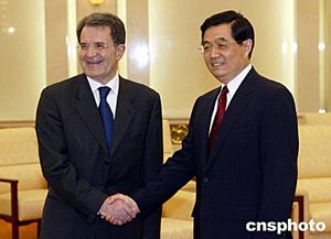 普羅迪表示,目前歐盟同中國的關(guān)系處于歷史最好時期。雙方不僅在經(jīng)濟上,而且在政治、文化以及科技等領(lǐng)域都進行了良好和富有成果的合作。歐盟重視中國在國際上的重要地位和作用,希望進一步密切同中國的戰(zhàn)略關(guān)系,全面加強同中國在各領(lǐng)域的合作。