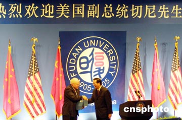 中新網(wǎng)4月15日電 正在上海訪問的美國副總統(tǒng)切尼今天上午在復(fù)旦大學(xué)發(fā)表演講時說,如今,中國已經(jīng)邁步走向一個偉大的征途,美國歡迎中國取得的長足進(jìn)步。