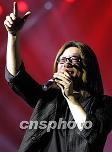 四月十九日晚,北京警方舉辦《道路交通安全法》文藝晚會,以讓更多的市民了解即將于五月一日實施的《道路交通安全法》。圖為歌手郭峰以一首《一路同行》為宣傳《道路交通安全法》放歌。中新社記者:任海霞