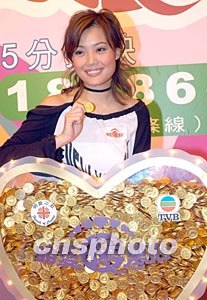 歌星容祖兒4月20日在香港出席慈善籌款晚會(huì)《明愛(ài)暖萬(wàn)心》記者會(huì),容祖兒將金幣注入心形燈箱,象征全力支持明愛(ài)籌款活動(dòng),籌款晚會(huì)將于25日晚舉行。作者:鄧慶樂(lè)