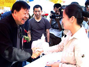 四月二十三日下午,著名相聲大師馬季來到北京地壇書市現(xiàn)場為讀者導(dǎo)購圖書并簽字售書,慶祝世界圖書日的到來。作者:韓藝冰