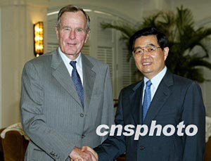 中新社博鰲四月二十三日電(記者 阮煜琳 關(guān)向東 王辛莉)中國(guó)國(guó)家主席胡錦濤二十三日下午在海南博鰲會(huì)見了前來參加博鰲亞洲論壇二OO四年年會(huì)的美國(guó)前總統(tǒng)喬治·布什,并表示,我們?cè)竿婪揭坏溃卫伟盐罩忻狸P(guān)系大局,加強(qiáng)交往和合作,妥善處理兩國(guó)關(guān)系中的問題,推動(dòng)中美關(guān)系繼續(xù)穩(wěn)定發(fā)展。