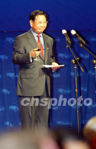 中新社博鰲四月二十三日電 (記者 關(guān)向東 阮煜琳 王辛莉)二十三日晚,海南省人民政府在博鰲亞洲論壇國(guó)際會(huì)議中心二層BFA主會(huì)場(chǎng),舉辦千人盛大晚宴,歡迎前來(lái)參加博鰲亞洲論壇二00四年年會(huì)的中外嘉賓。