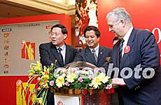 4月28日,2004-05CBA聯(lián)賽商務(wù)推介會在北京舉行,這個賽季的比賽將在賽制和招商模式上進行重大改革:南北分區(qū)的新賽制、公開透明的招商模式、為球迷、贊助商和媒體服務(wù)。圖為籃管中心主任李元偉(左一)與嘉賓共同開啟新賽季南北雙方參賽隊伍。中新社記者:盛佳鵬