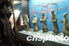 北京故宮博物院四月二十八日舉辦《鄭振鐸捐獻(xiàn)陶俑特展》。主辦方遴選出鄭振鐸捐獻(xiàn)給故宮博物院的六百余件陶俑中的一百三十六件參加展覽。圖為西漢灰陶女立俑。中新社記者:張勤