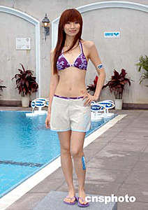 藝員黃泆潼4月29日在香港出席國際泳裝品牌Arena 04泳裝展示派對,為Arena展示新款泳裝。作者:鄧慶樂