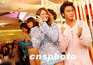 4月29日,艷麗的模特在香港“連卡佛”商場舉辦“2004年春夏男女時尚服裝展”上,演繹時尚泳裝系列。  香港新晉紅星吳卓羲4月29日在香港“連卡佛”商場,客串模特演繹春夏具潮流風(fēng)格新裝。