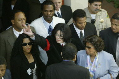 流行樂(lè)歌王邁克爾·杰克遜30日在聽(tīng)證會(huì)上面對(duì)10項(xiàng)法庭指控均表示否認(rèn),其中包括多項(xiàng)性騷擾兒童的指控。聽(tīng)證會(huì)后,杰克遜在發(fā)表的簡(jiǎn)短聲明中表示,向全球支持他的歌迷表示感謝。