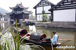 據(jù)統(tǒng)計,二○○四年“五一”黃金周期間,全國共接待旅游者一點零四億人次,實現(xiàn)旅游收入三百九十億元;納入全國假日旅游統(tǒng)計預(yù)報體系的九十九個旅游景區(qū)(點),“五一”黃金周期間共接待一千四百多萬人次,門票收入四點八二億元。圖為浙江紹興作為江南水鄉(xiāng)“五一”黃金周期間賺足人氣。作者:徐曦弋